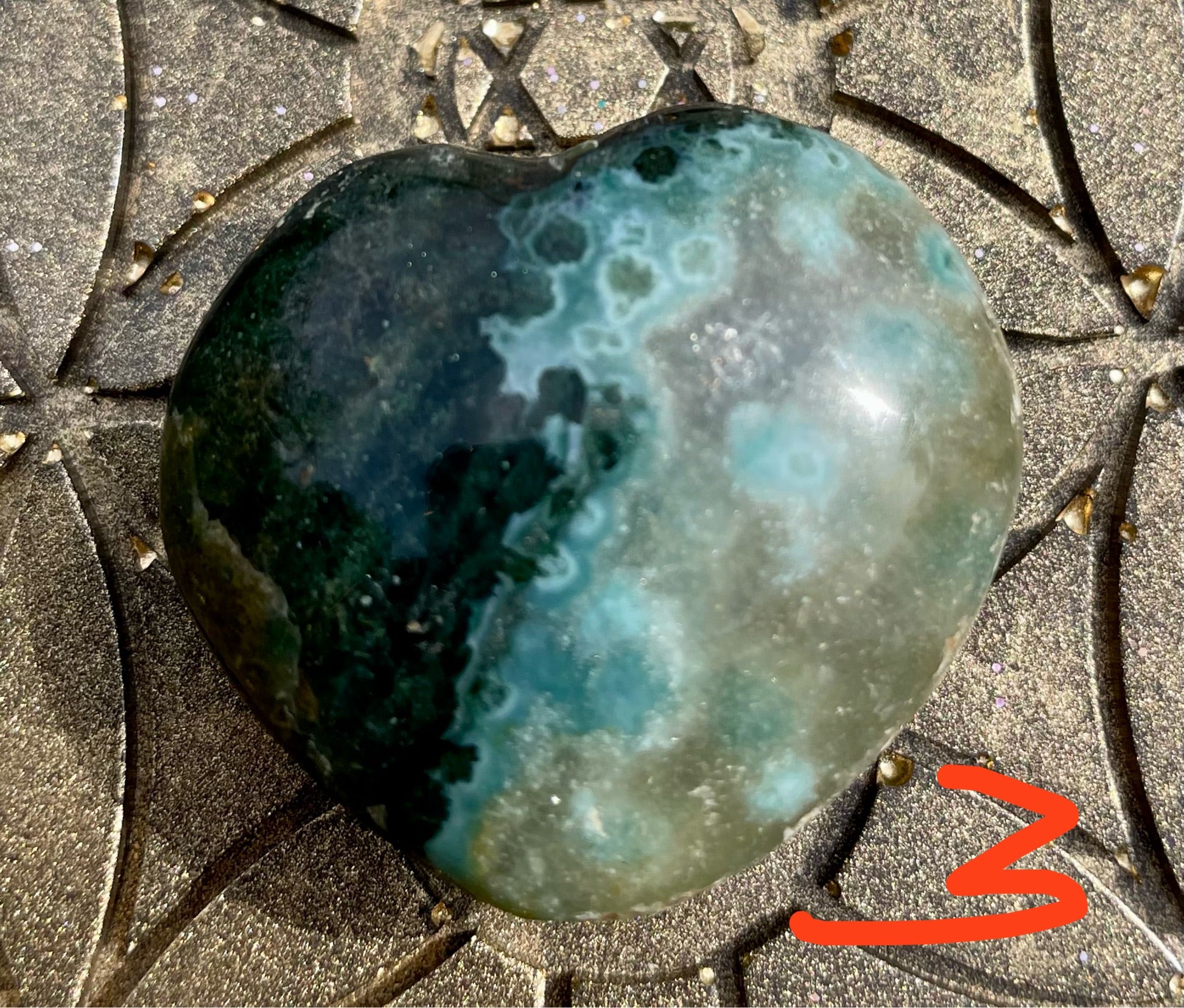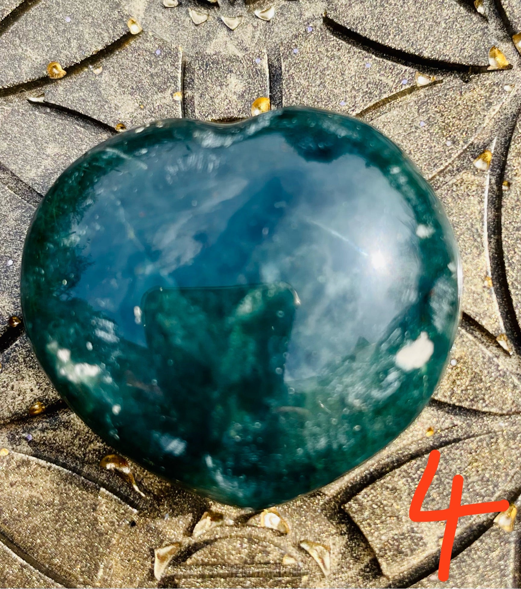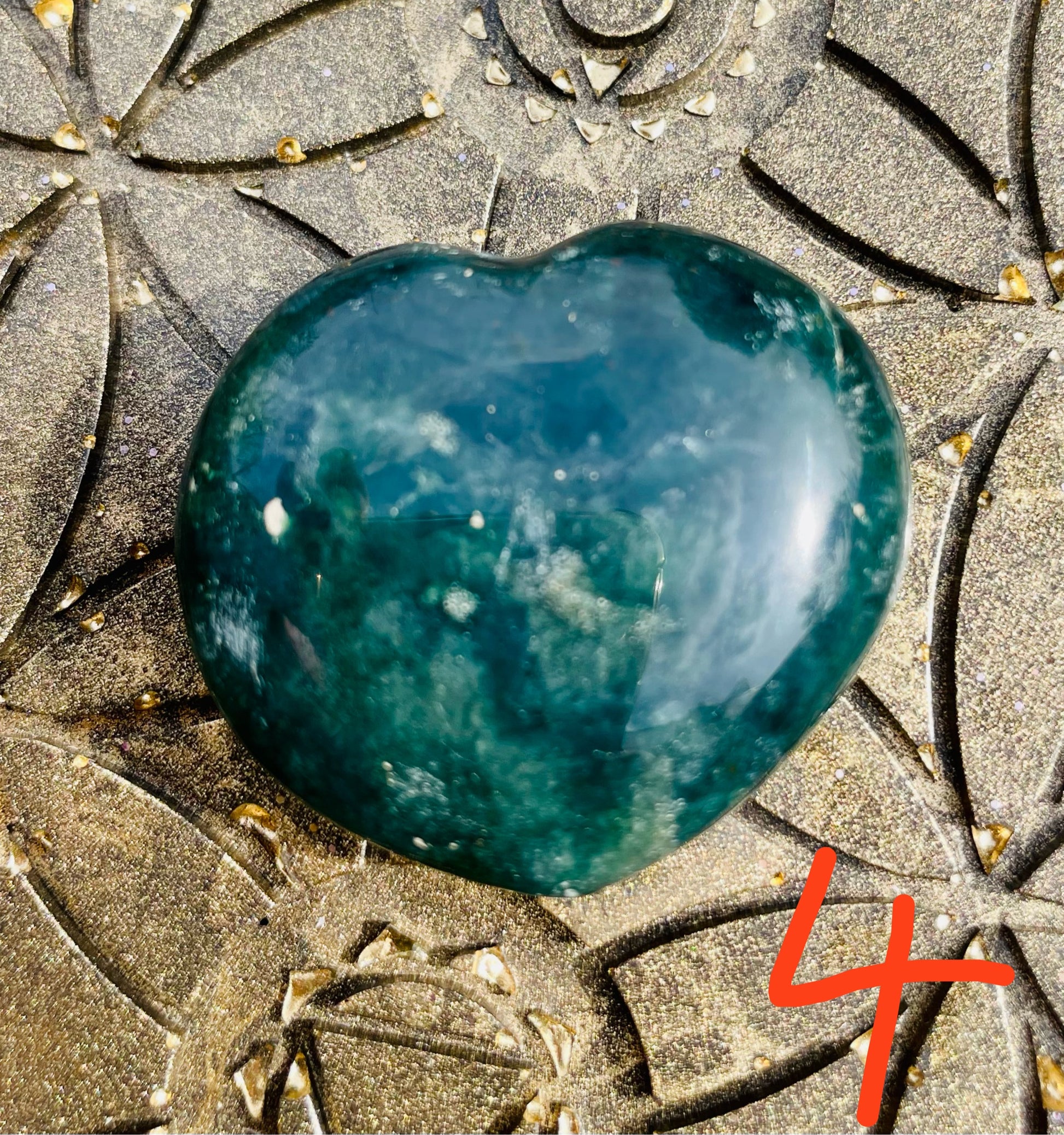 Der Moosachat wirkt besonders gut auf dem Herzchakra.
